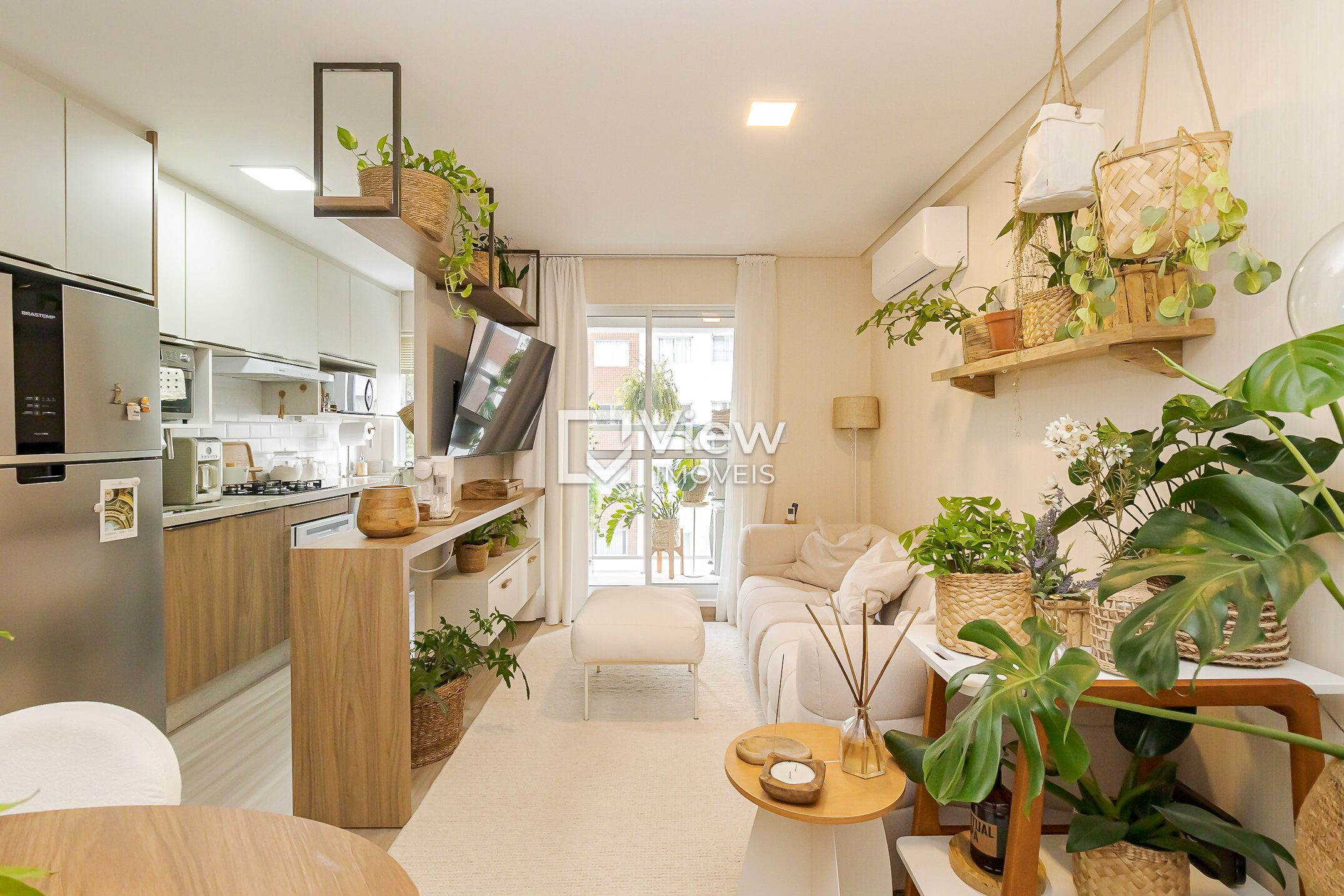 Aconchegante apartamento, verdadeiro exemplar do estilo Boho Chic, conta com sala de estar e jantar integradas à cozinha com bancada que organiza tudo; sacada com churrasqueira para aproveitar o fim de tarde. Dois quartos — suíte confortável e mais um quarto — e banheiro social completando o layout. Compacto, lindo e com um toque de charme na sacada.