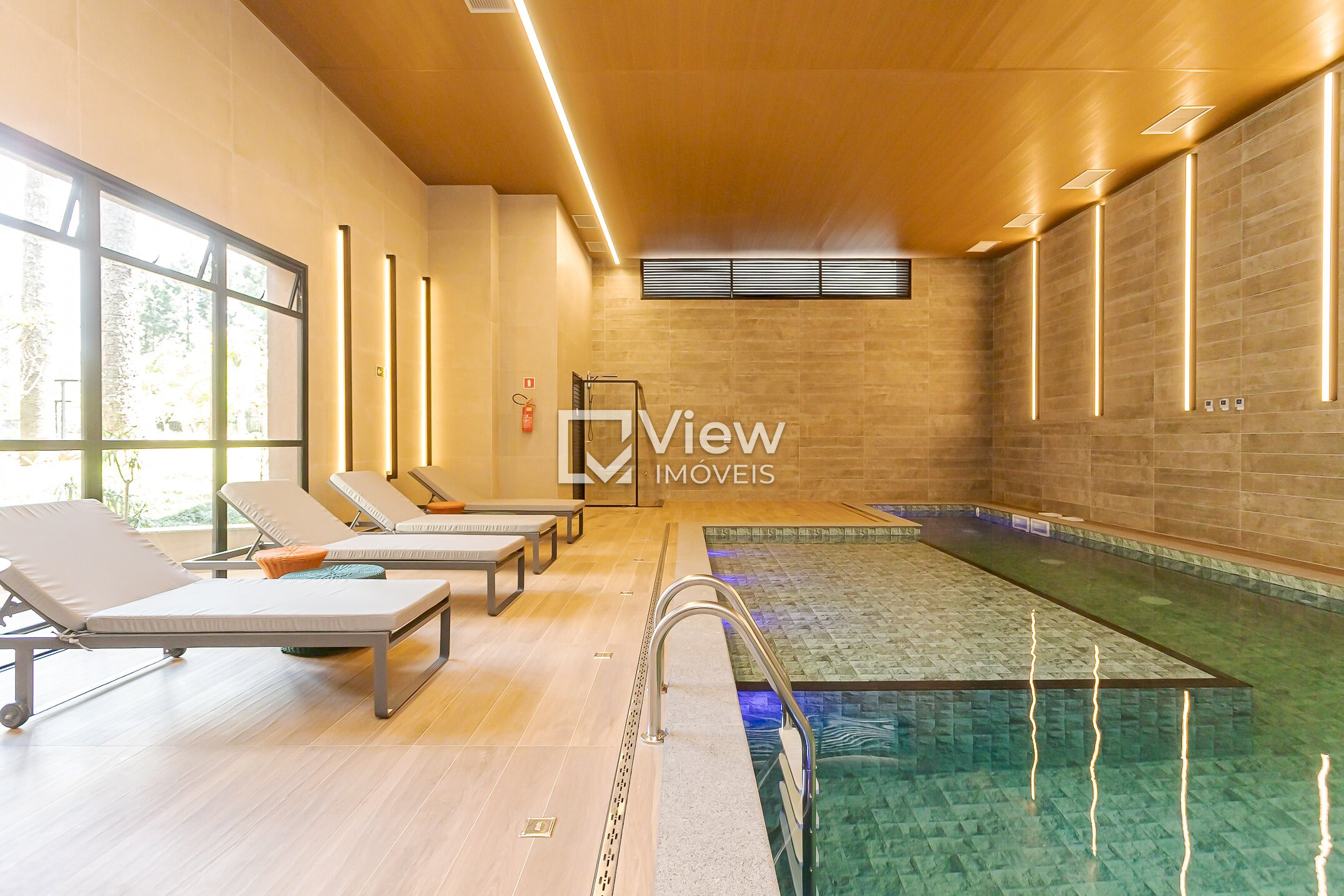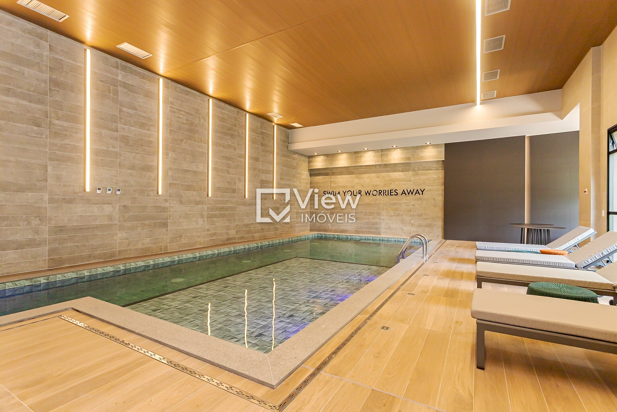 Piscina coberta e aquecida para relaxar em qualquer estação
