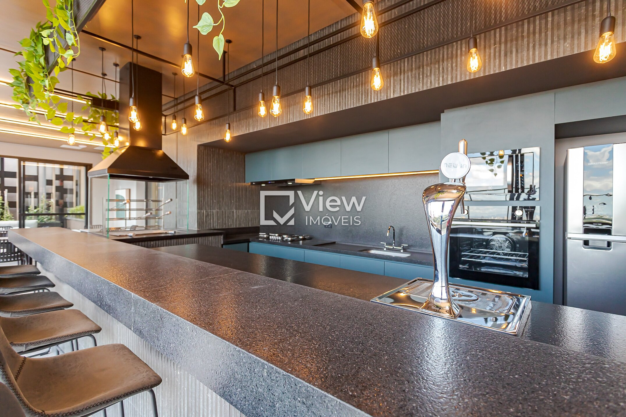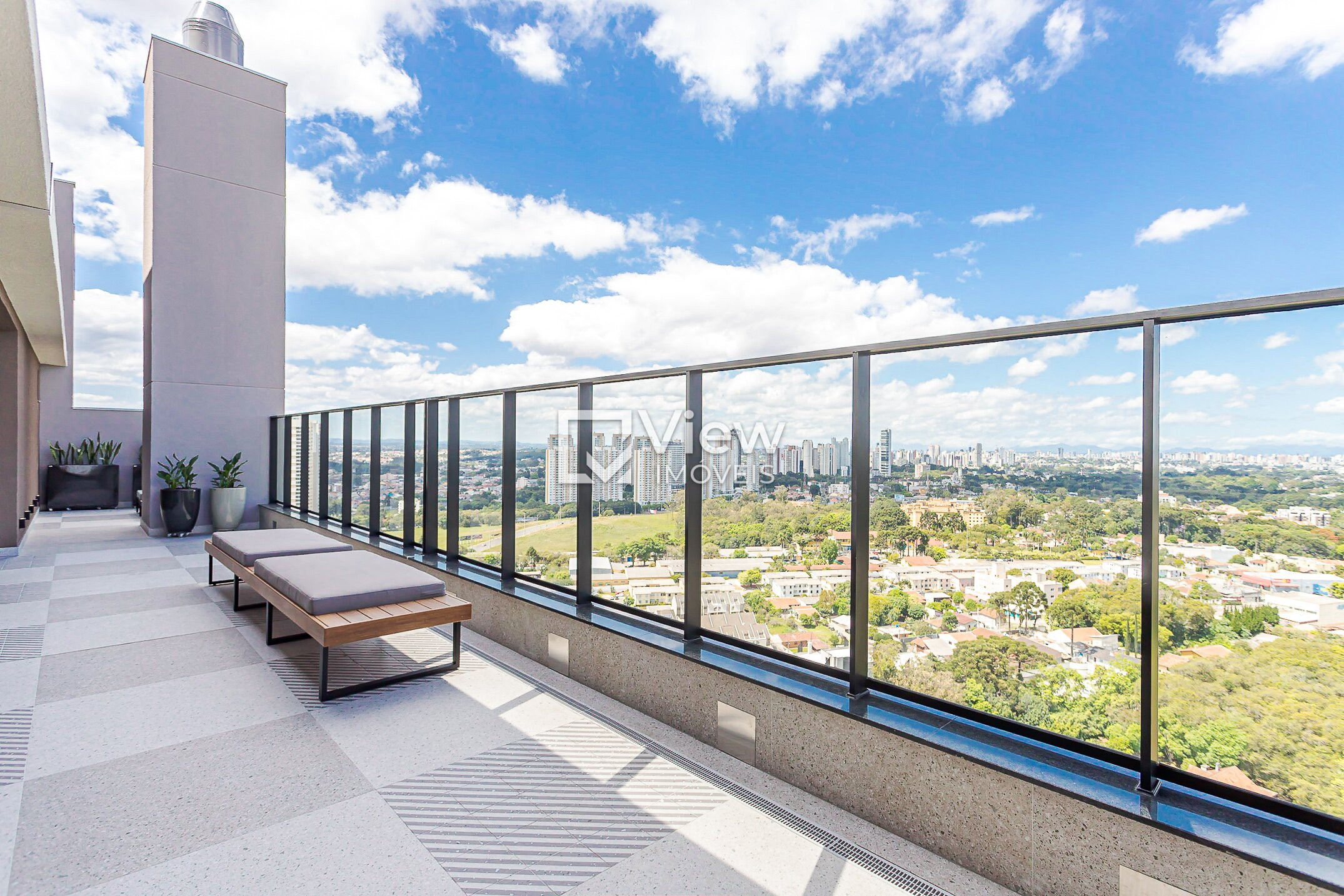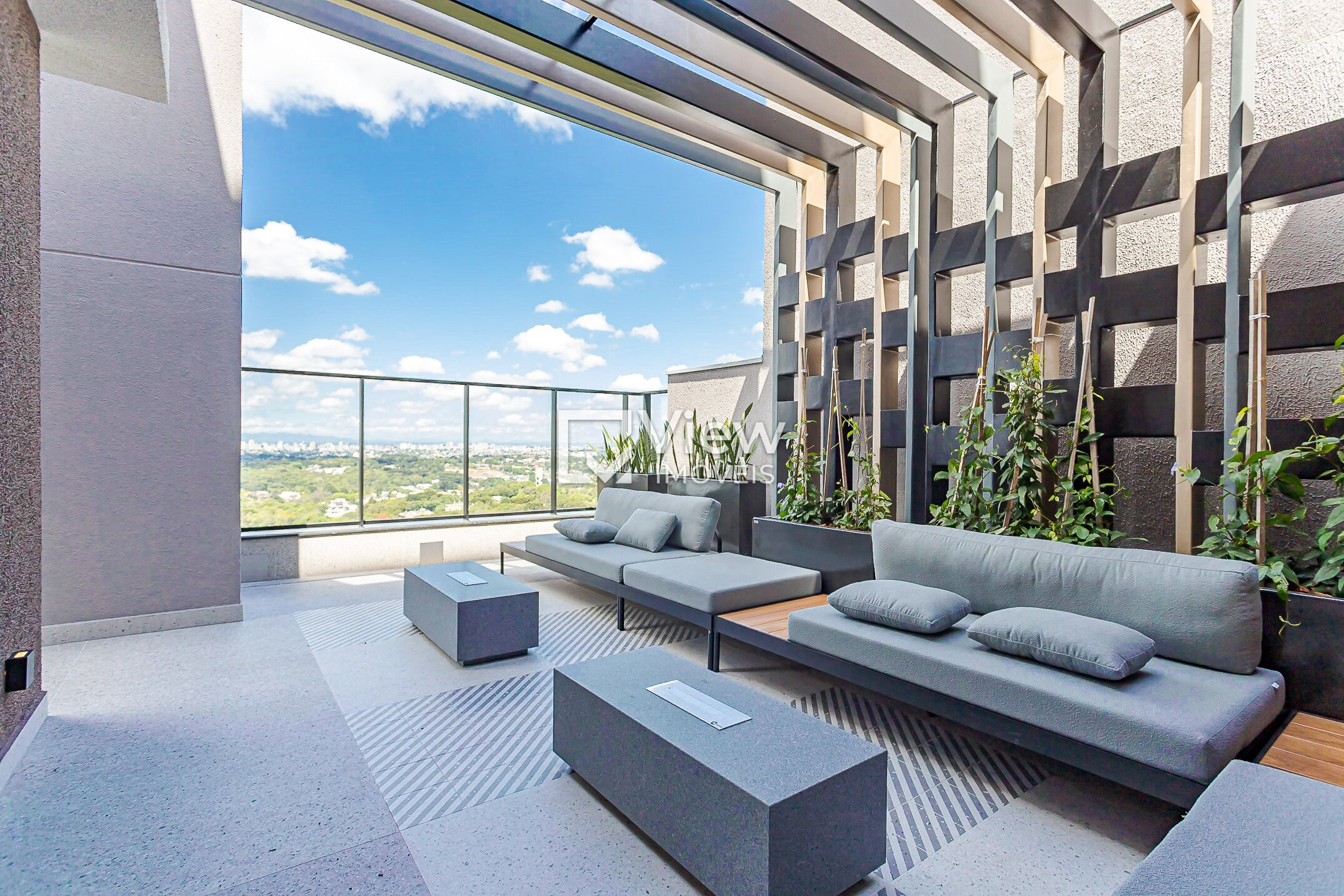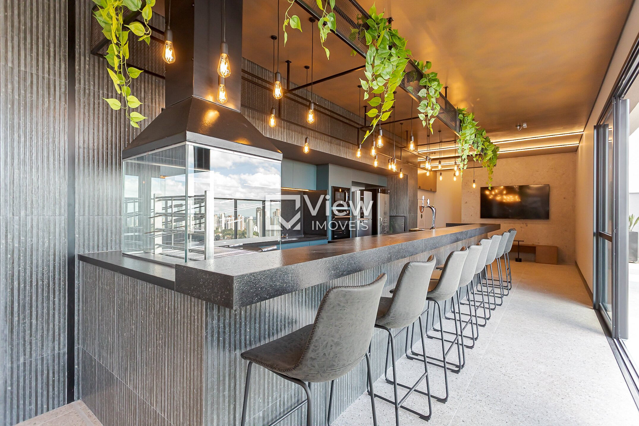 Espaço gourmet no rooftop com vista panorâmica
