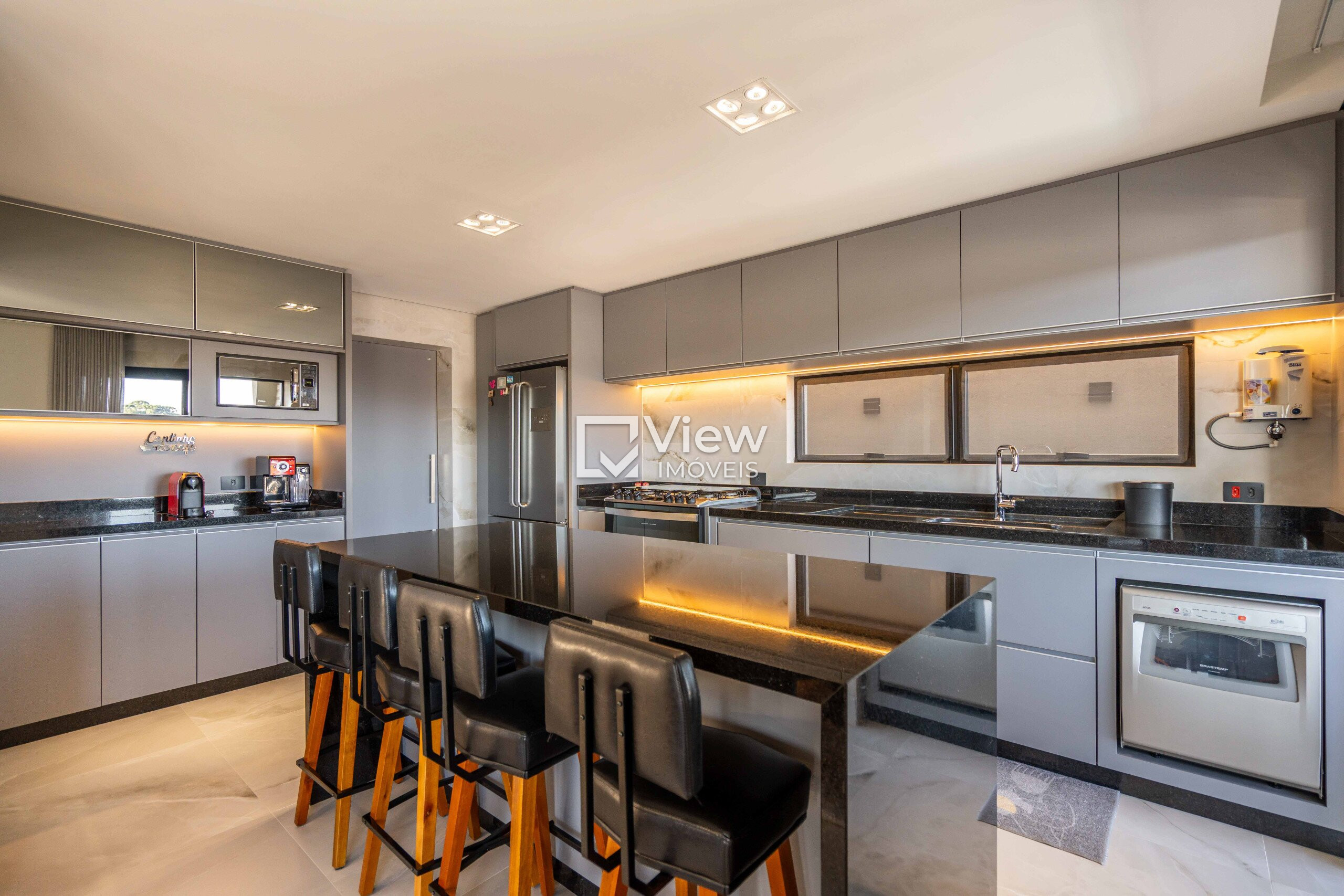 Os acabamentos em quartzo, porcelanato e piso viníico são de altíssimo padrão.