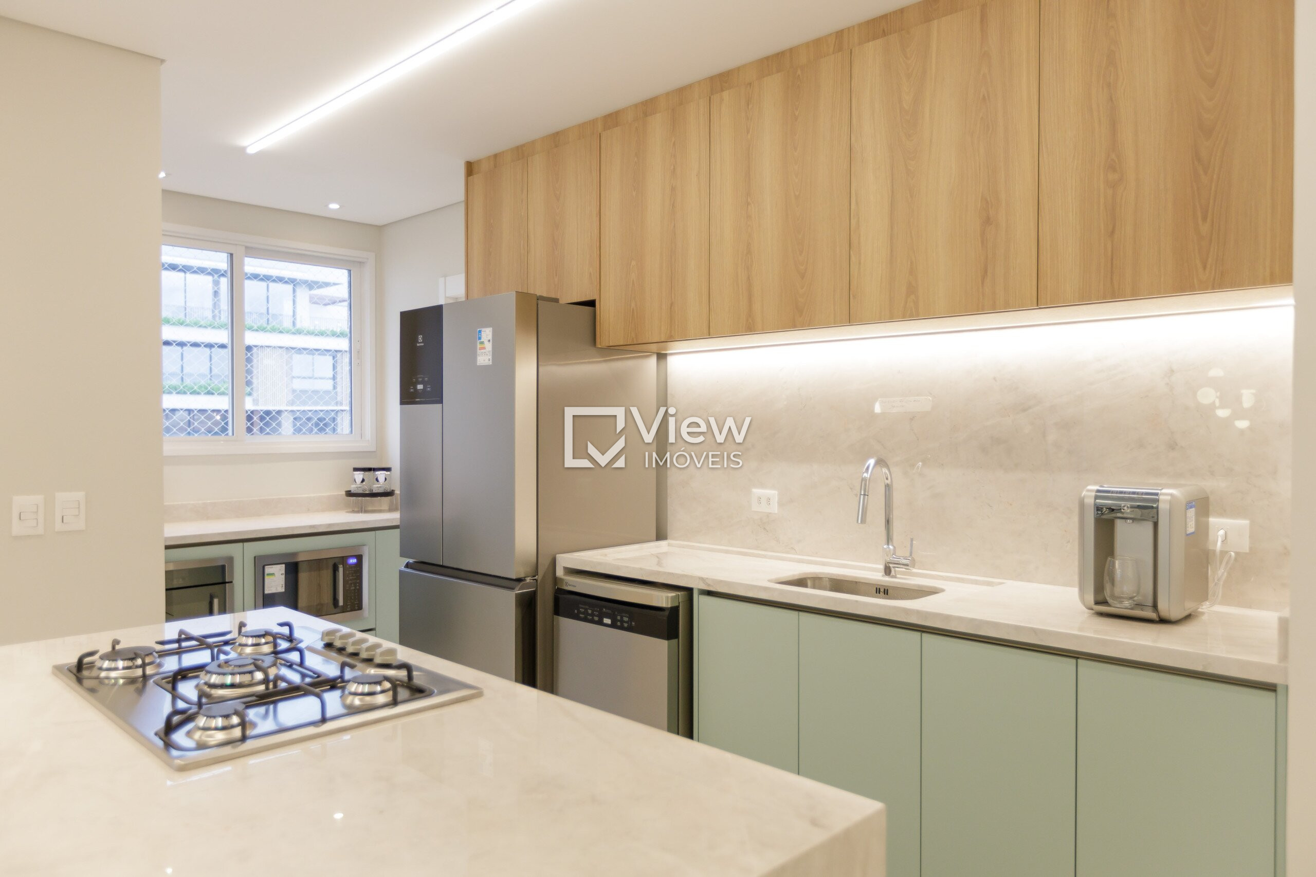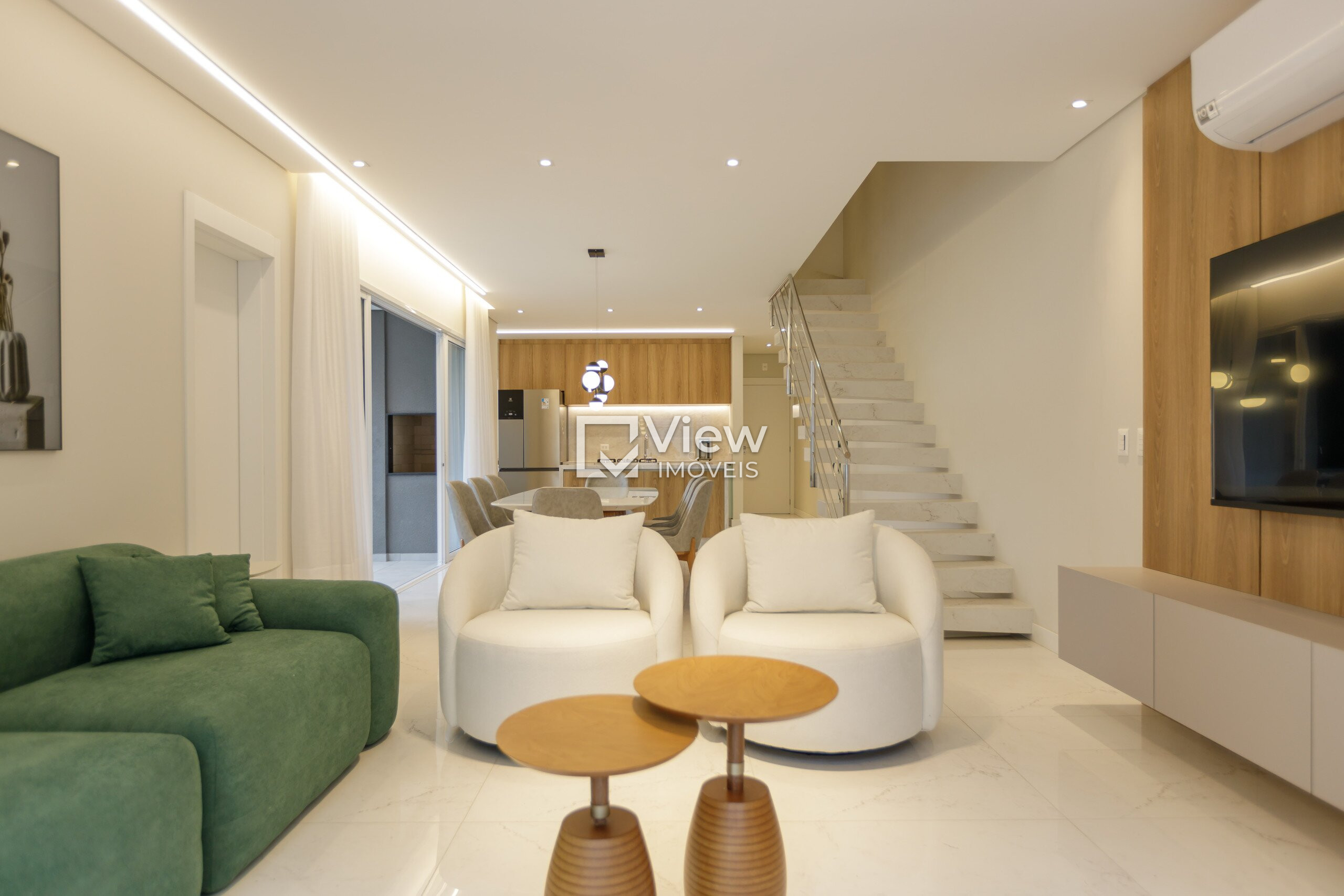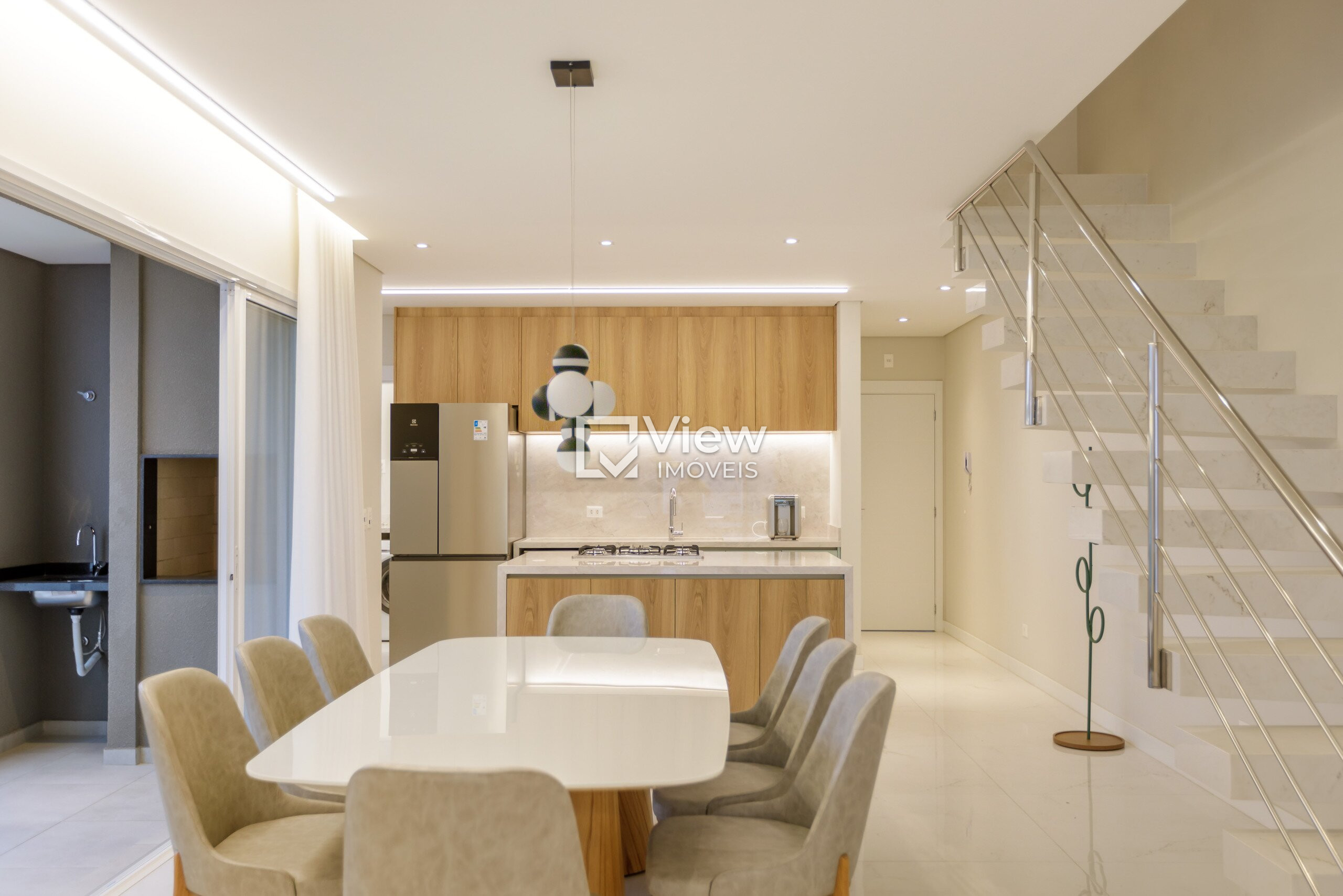 Ao adentrar esta residência única, você será recebido por uma sala ampla, cuidadosamente projetada para oferecer um ambiente de convívio sofisticado. Os dois ambientes da sala foram habilmente dispostos para otimizar o espaço e criar uma atmosfera aconchegante. A integração perfeita com a cozinha é um verdadeiro destaque, onde a excelência encontra a funcionalidade. Os móveis planejados da renomada marca Bontempo proporcionam um toque de elegância, além de uma eficiência prática que atenderá aos gostos mais exigentes.